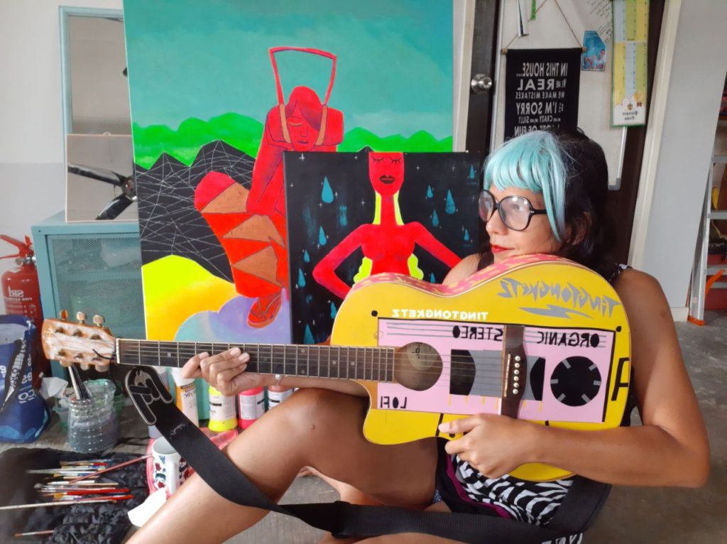 Shika was known as an established visual artist before spreading her wings into Malaysia’s indie music scene as the lead guitarist of TingTongKetz, a band which she describes as playing, “Hmmm maybe folk-garage-indie punk, something like that”. Her ability to combine her activism with her art began during the advent of Seksualiti Merdeka over a decade ago.